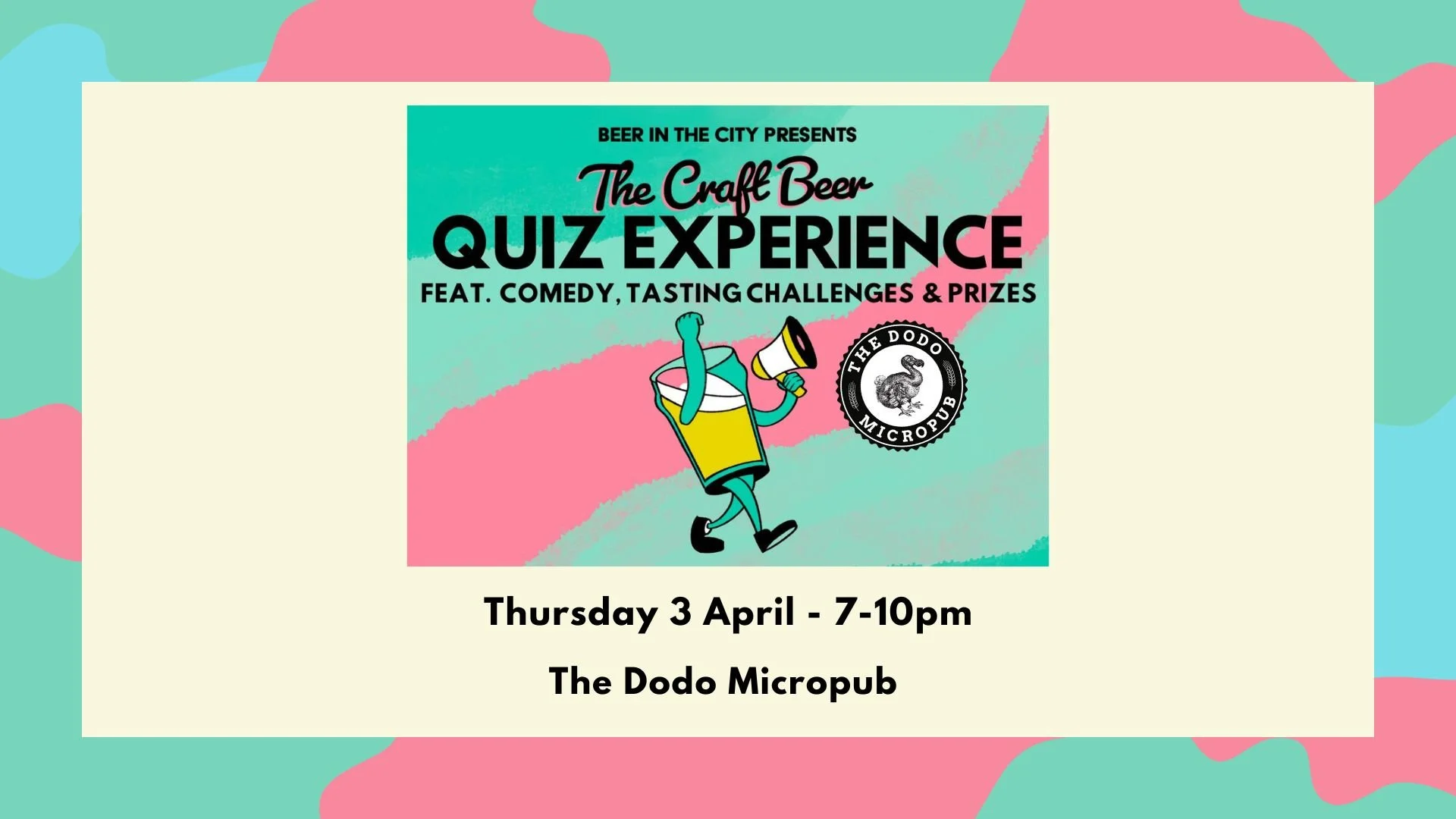 Hosted by Joey from Beer In The City, this is no ordinary pub quiz. This is a craft beer pub quiz! Expect unique and quirky challenges, themes to keep you giggling and learning, plus prizes! Lots of prizes!