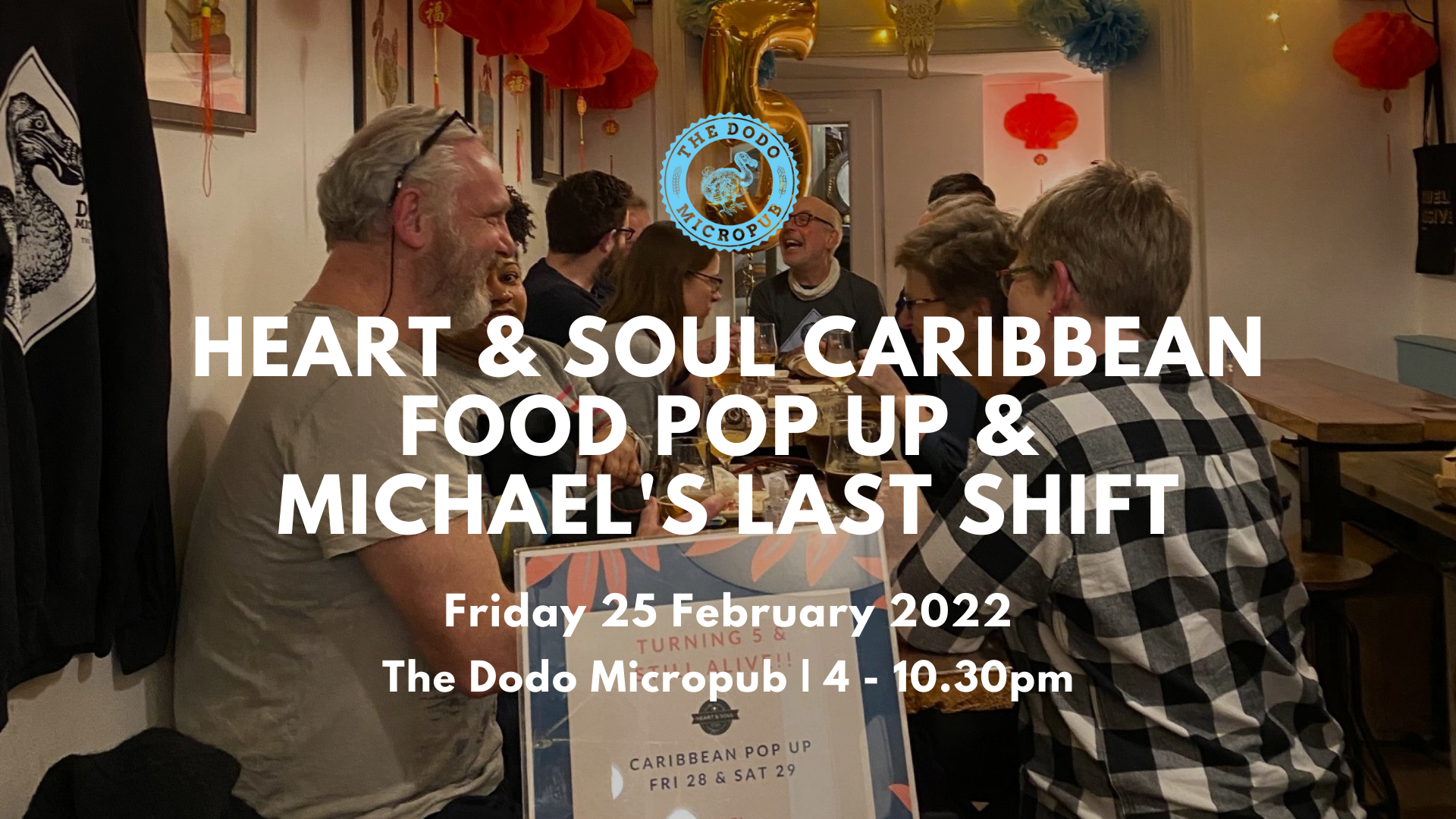 It’s Michael’s last shift at The Dodo - booo but of course he’s requested his favourite pop up one last time! Heart & Soul Caribbean Food will be joining us on the 25th February with wings, rotis and mac n cheese pie! All the faves!